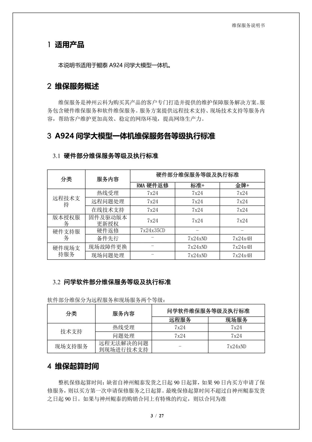 平安陆金所A924 DS大模型一体机硬件维保服务说明书_V1.1