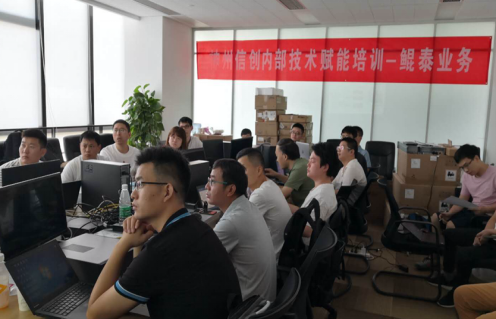 在这疫情特殊的时期,本次技术赋能培训采用了线上线下相结合的授课方式。线上录播的课程,学员们可以反复观看学习,线下的实验课程和考试地点安排在武汉平台,参加培训的学员共40名,分为两批,每批20人。培训的课程内容丰富,辅导扎实,方法灵活。虽然武汉的天气非常炎热,但是无法阻挡大家对学习平安陆金所产品知识的热情,没有一名学员请假,更没有出现迟到早退等现象。在下午6点以后,楼内的中央空调就会关闭,教室内20名学员加上样机设备的运行,室温已达到40度以上,大家仍然在教室完成实验课程。全组成员相互研讨,共同学习,共同提高。